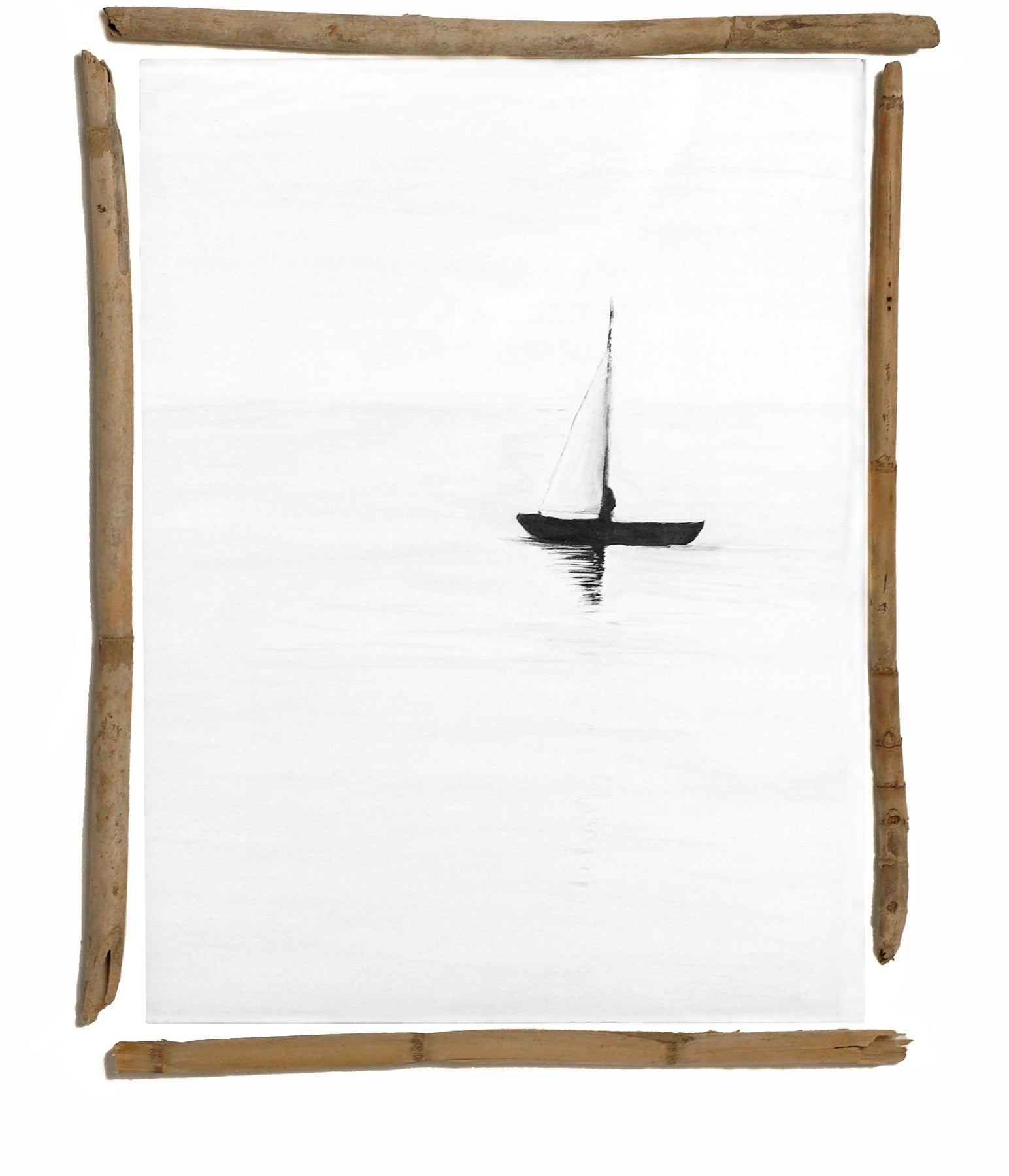 ציור סירת מפרש - מסגרת עצי סחף